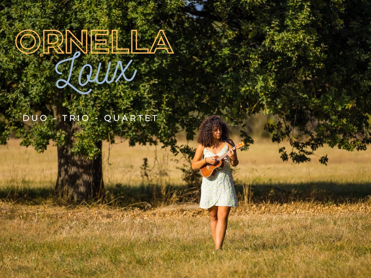 Prestation assurée par Ornella Loux, ukulélé et voix. Elle fournit son matériel de sonorisation et propose un set varié : standards du jazz et du swing, reprises pop - groove, chansons françaises. Le set dure 2x 45min avec une petite pause entre les deux mais possibilité de s'adapter en fonction de l'organisation.