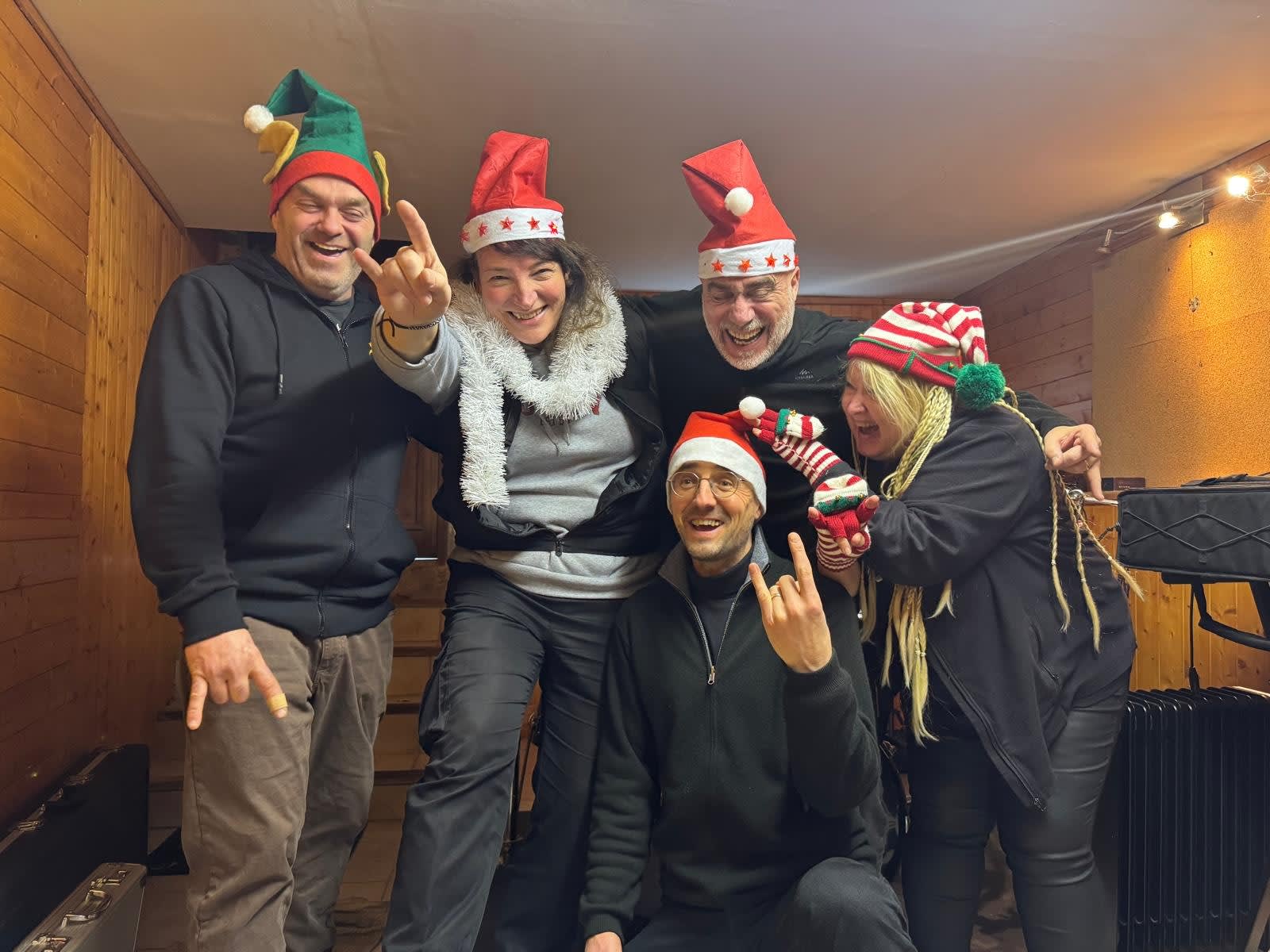 Notre groupe est composé de 2 guitaristes, 1 bassiste, 1 batteuse, 1 chanteuse et nous disposons d'amplis pour nos instruments et pour la voix (1000 watts), nombreux micros filaires ou sans fil et pieds de micro. Nous pouvons nous déplacer parmi vous pour vous faire chanter ! Il nous faut, si possible 3 prises terre, nous apporterons nos multiprises et rallonges. Le matériel ne doit pas prendre l'eau, le lieu doit être donc couvert et sans infiltration, s'il s'agit d'un extérieur, même en été car en cas de pluie, il faudra une surélévation et une protection type barnum avec avec côtés protégés si possible pour ne pas détériorer notre matériel avec la pluie. Donc surface au sol mini 3x5 pour reculer le matériel en cas de pluie. Si vous nous sollicitez en extérieur et qu'il fait froid, nous aurons besoin de chaufferettes car les doigts des musiciens ne doivent pas être engourdis donc inefficaces et la chanteuse ne doit pas prendre froid. Nous attendons également de votre part repas et boissons, avec possibilité de s'asseoir, de préférence après la prestation pour le repas afin de garder la pêche ! Une table pour poser nos effets musicaux et personnels ou chaises, tabourets sont bien utiles. Avec notre nouvelle table numérique nous pouvons sonoriser la prestation. Merci beaucoup pour votre attention. Hâte de partager de bons moments avec vous !