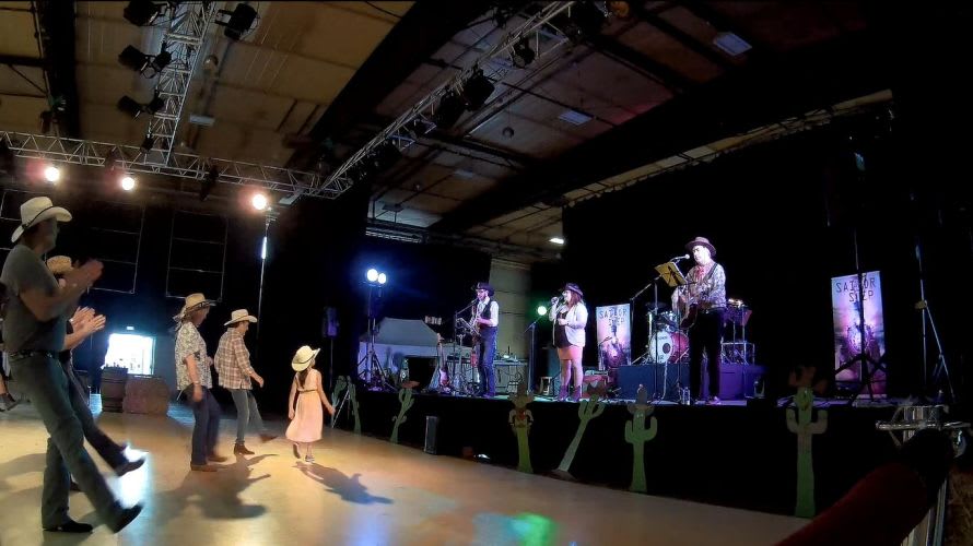 Programme country et/ou rock'n'roll 100% live. ~46 titres choisis dans une playlist de ~100. Sono et lumières fournis. Ambiance assurée. guitares, voix et choeurs, batterie, basse, percussions, harmonica, flutes,... Idéal pour un club de danse ou une animation de village. Musiciens professionnels déclarés.